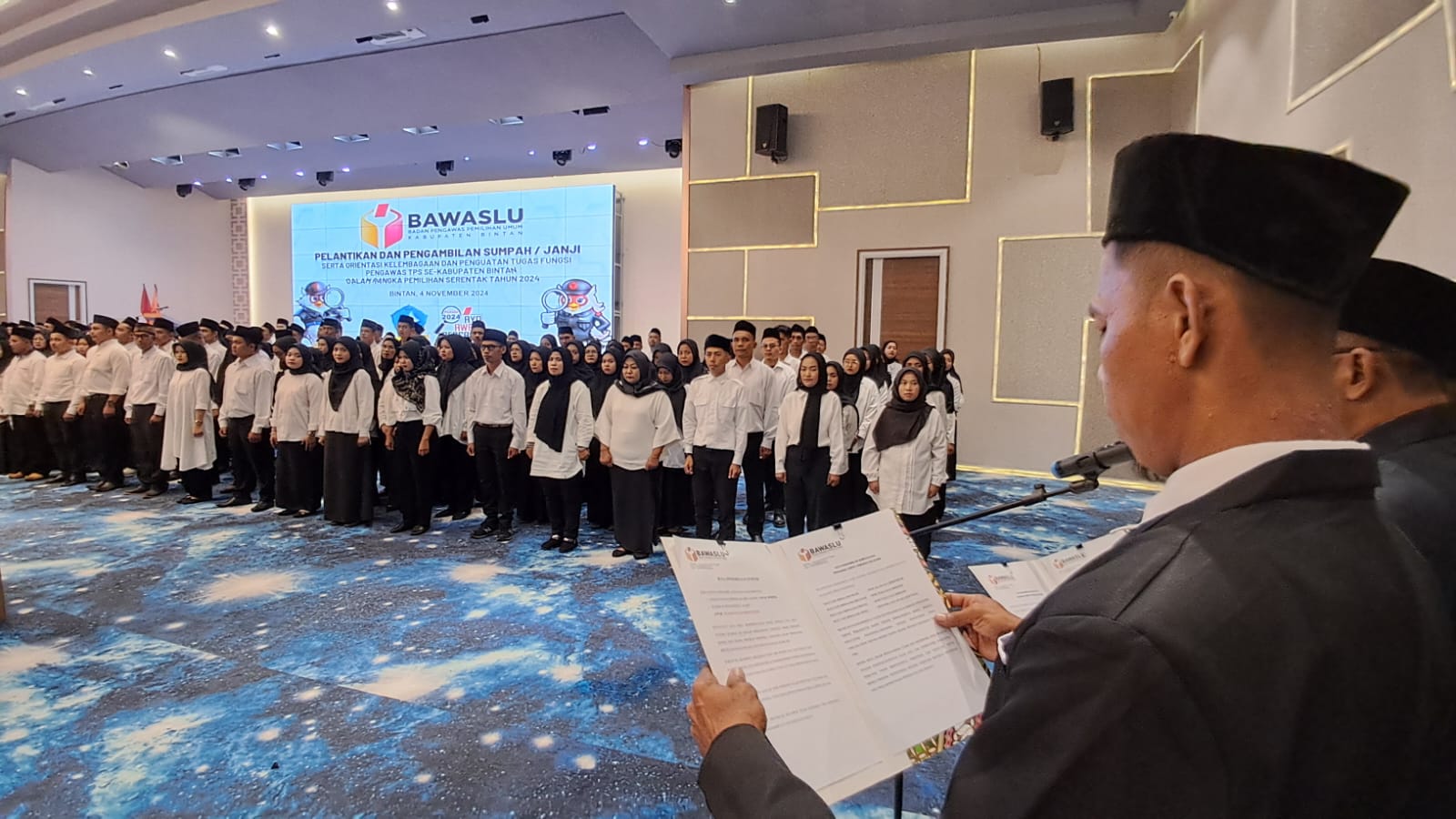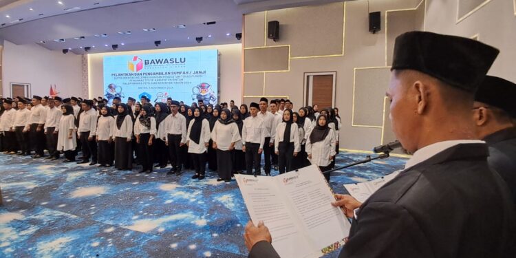 Pelantikan difasilitasi Bawaslu Bintan yang berpusat di Bintan Agro, Kecamatan Gunung Kijang, Senin 04 November 2024.