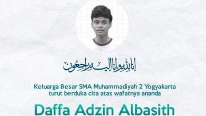 Anak anggota DPRD Kebumen yang masih bersekolah di Sekolah Menengah Atas, Daffa Adziin Albasith (18) meregang nyawa ditangan para klitin.