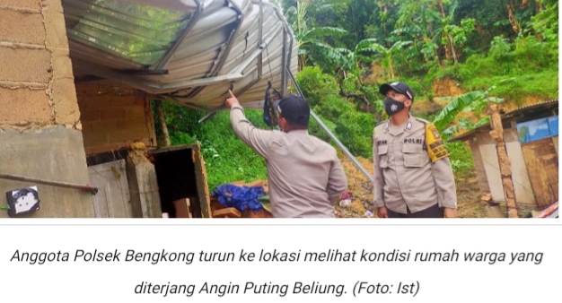 “Kemudian turun hujan, namun secara tiba-tiba tanpa sepengetahuan warga, angin puting beliung datang dengan cepat dan memporak-porandakan atap rumah warga,” ujar AKP Bob Ferizal.