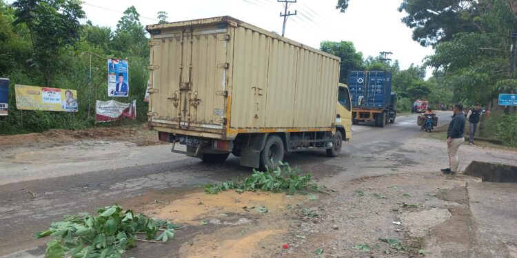BINTAN – Sejumlah lubang di Jalan Nusantara Km 18 Kijang, Kelurahan Gunung Lengkuas ditambal semen oleh Pemerintah Kecamatan Bintan Timur, Kabupaten Bintan.