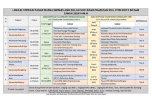 Keprionline.co.id, Batam – Untuk mengantisipasi terjadinya inflasi jelang bulan Ramadhan dan hari raya Idul Fitri Pemko Batam akan membuka pasar murah yang rencananya akan dilakukan di beberapa titik.