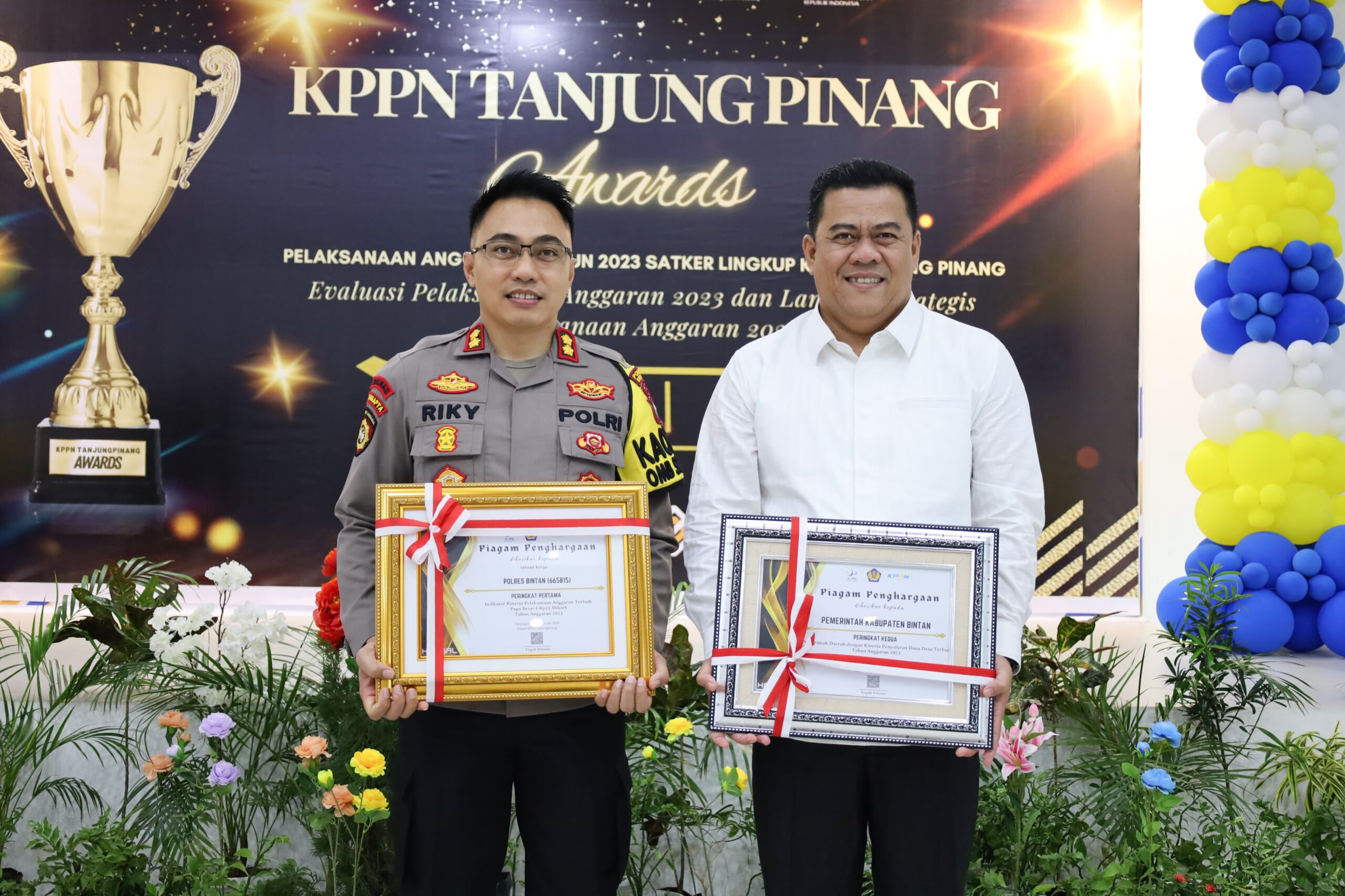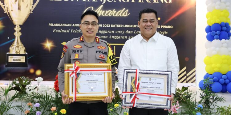 Pemberian penghargaan juga diterima langsung oleh Kapolres Bintan AKBP Riky Iswoyo.