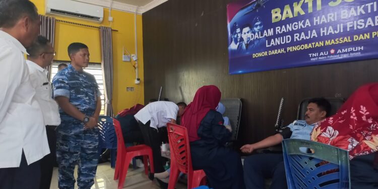 BINTAN – Peringatan Hari Bakti TNI AU ke 77, Lanud Raja Haji Fisabilillah (RHF) gelar bakti sosial di Kantor Desa Gunung Kijang.