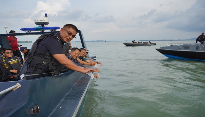 “Proses pencacahan, administrasi maupun pelepasliaran dilaksanakan bersama dengan satgas Lantamal IV, BAKAMLA RI, BAIS TNI, petugas dari BKIPM (Badan Karantina Ikan, Pengendalian Mutu, dan Keamanan Hasil Perikanan), dan PSDKP (Pengawasan Sumber Daya Kelautan dan Perikanan). Seluruh benih lobster tersebut langsung dilepasliarkan di perairan Pulau Merak Kecamatan Meral pada Selasa (24/10/2023) sekitar pukul 16.00 WIB,” ungkapnya.