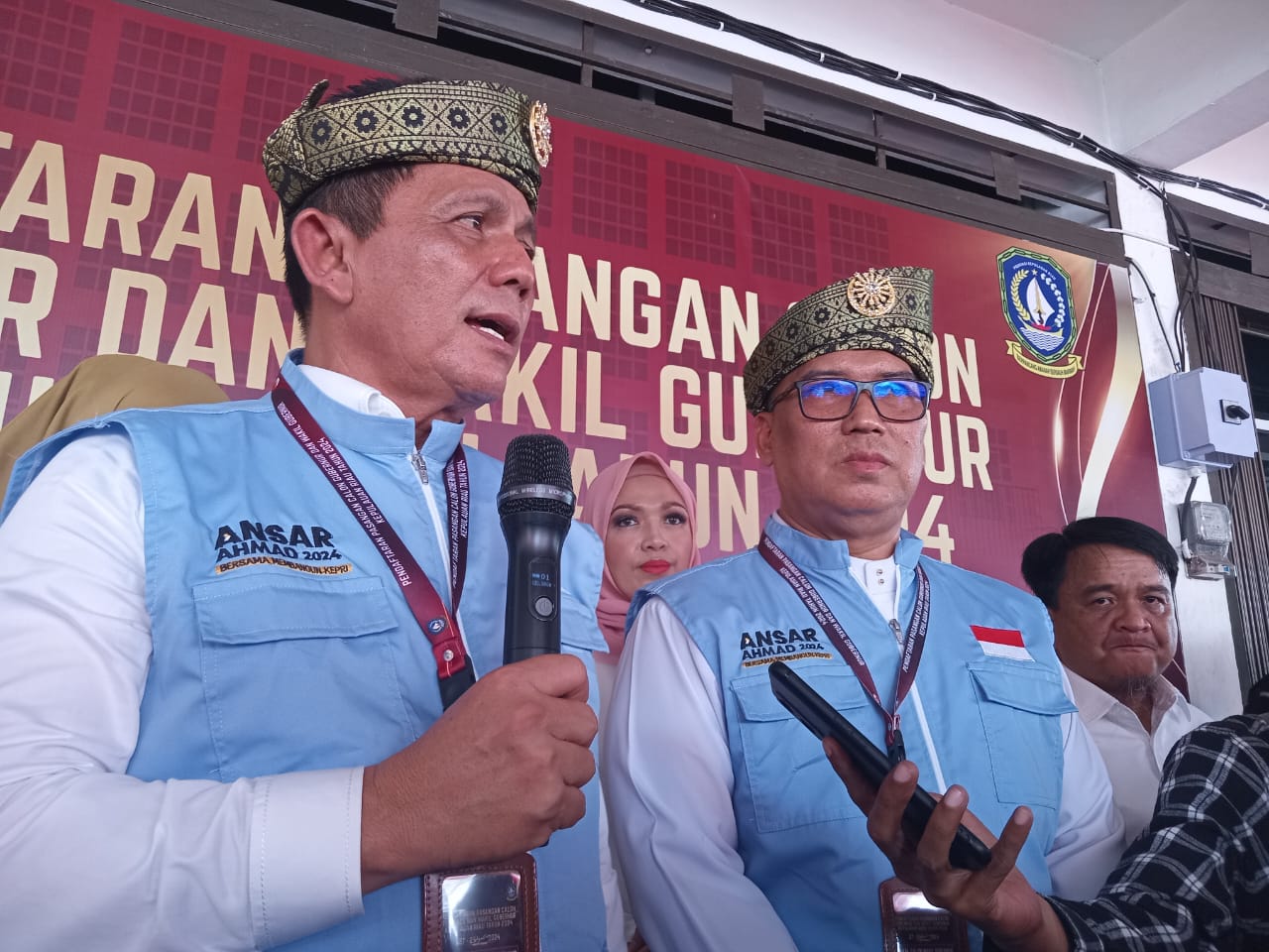 Bakal calon Gubernur Kepri Ansar Ahmad dalam Sambutannya mengatakan, dirinya datang k kantor kpu mendaftark diri untum mecalonkan guneru kepri