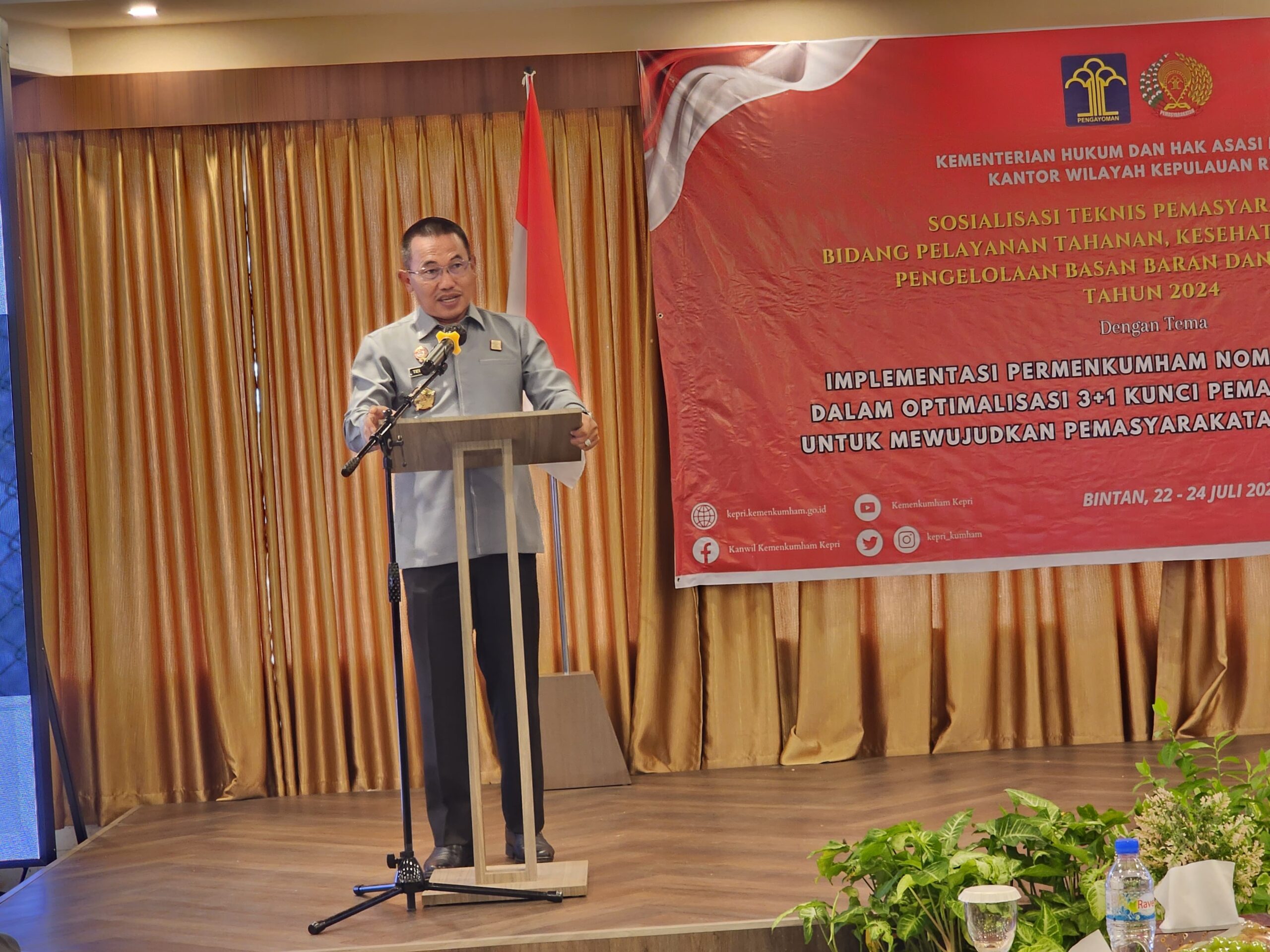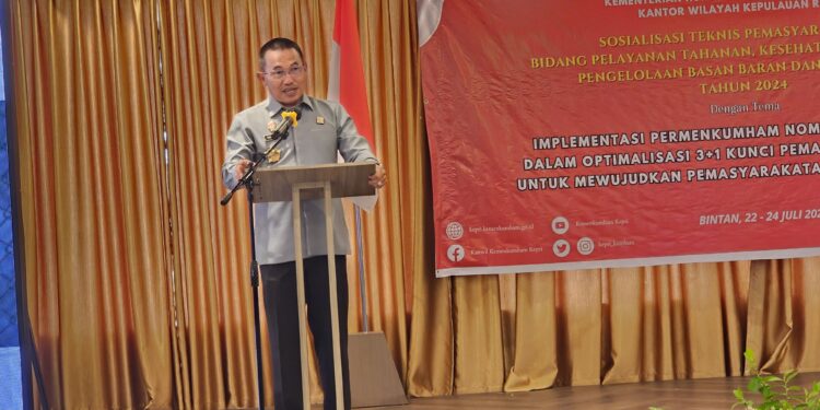 BINTAN – Kalapas Narkotika Tanjungpinang, Edi Mulyono hadiri sosialisasi teknis pemasyarakatan yang dipimpin Direktur Pengamanan dan Intelijen Dirjen Pemasyarakatan Kemenkumham RI, Brigjen Pol. Teguh Yuswardhie di Hotel Bintan Pearl.