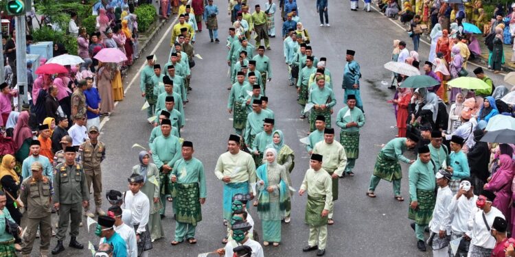 Kafilah dari tujuh Kabupaten/Kota memadati seluruh ruas jalan dengan tampilan berbagai atraksi seni dan budaya