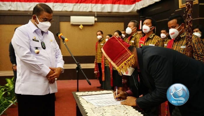 KEPRIONLINE.CO.ID, KARIMUN – Bupati Karimun, Anur Rafiq bersama Ketua Dewan Perwakilan Rakyat Daerah ( DPRD ) dan unsur Forum Koordinasi Pimpinan Daerah ( Forkominda ) menghadiri acara pelantikan Pengurus Perkumpulan Batak Kabupaten Karimun ( PBKK ) masa bakti 2021 – 2024 yang diselenggarakan di Gedung Nasional Tanjung Balai Karimun, Rabu ( 8 / 9 / 2021 ) .