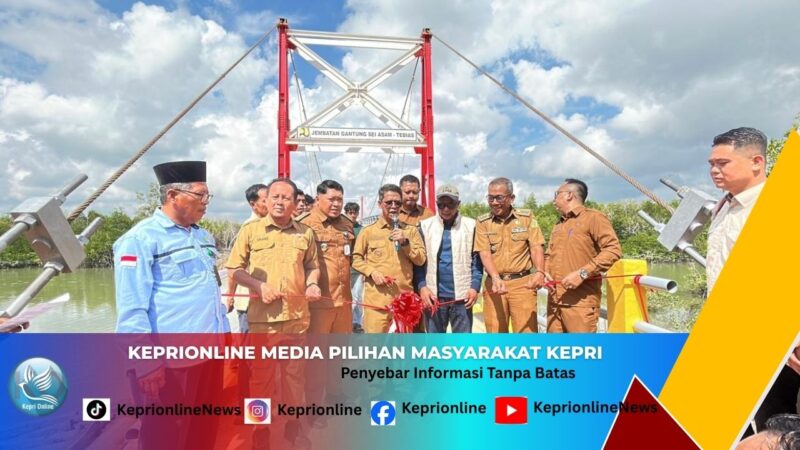 Keprionline.co.id, KARIMUN – Bupati Karimun Ing Iskandarsyah meresmikan penggunaan Jembatan Gantung Tok Kenot yang menghubungkan Desa Tebias dengan Desa Sungai Asam, Kecamatan Belat, Senin (27/04). Peresmian ini menjadi langkah penting dalam membuka akses transportasi darat bagi masyarakat di kedua desa.