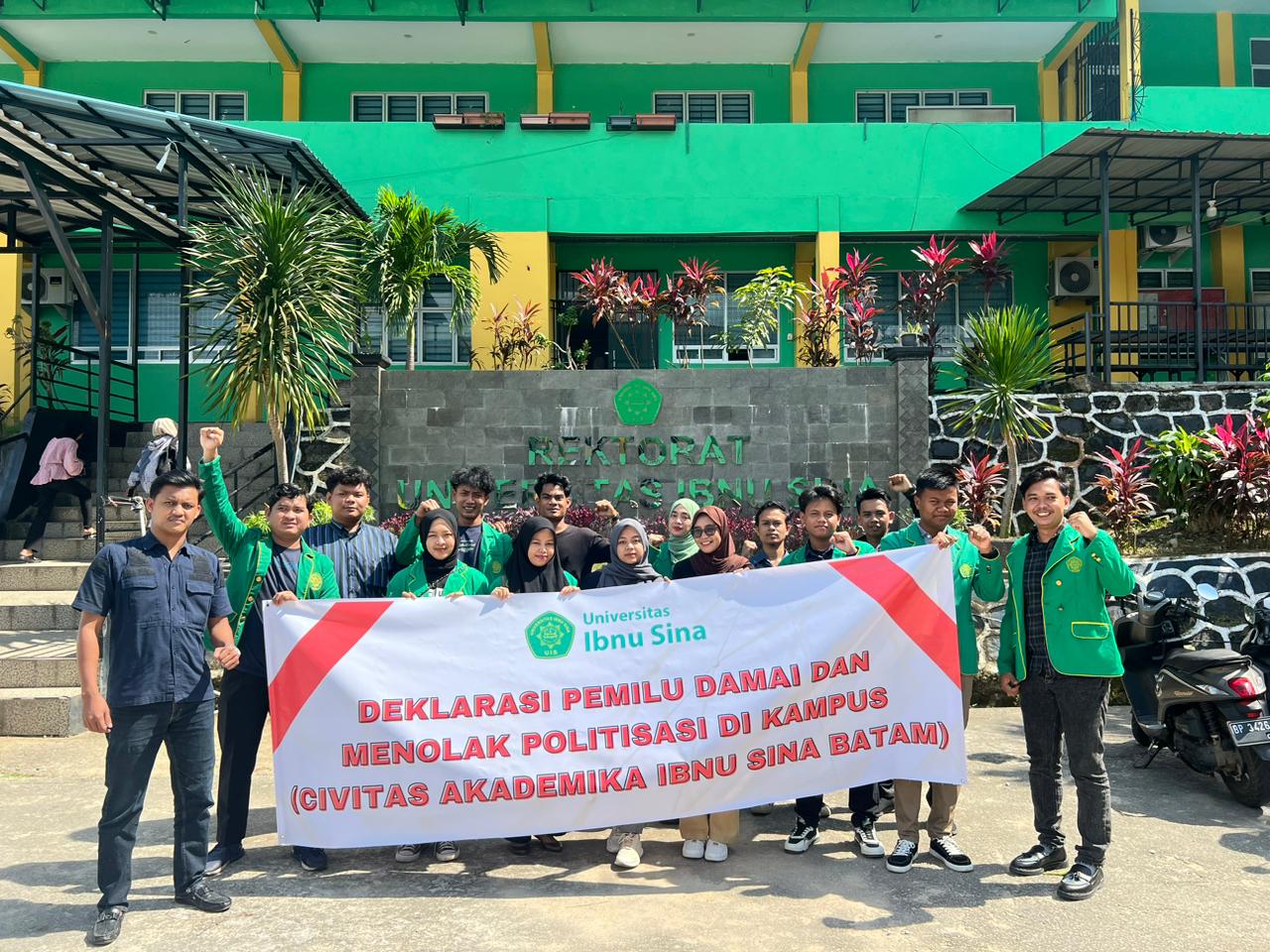 Keprionline.co.id, Batam – Dukungan Pemilu 2024 agar berlangsung aman dan kondusif terus berdatangan. Kali ini Civitaa Akademuka Universitas Ibnu Sina Batam, kompak menyuarakan kontestasi politik berjalan kondusif serta menolak politisasi di Kampus.