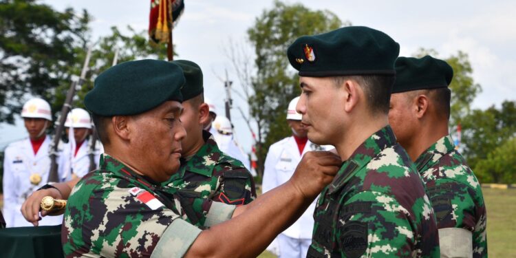 BATAM – Komandan Korem (Danrem) 033/Wira Pratama (WP), Brigjen TNI Yudi Yulistyanto pimpin upacara serah terima jabatan (sertijab) Komandan Batalyon Infanteri Raider Khusus 136/TS.