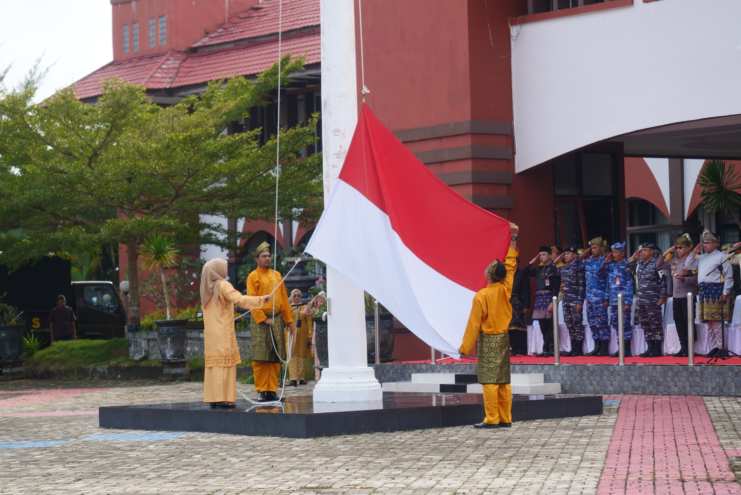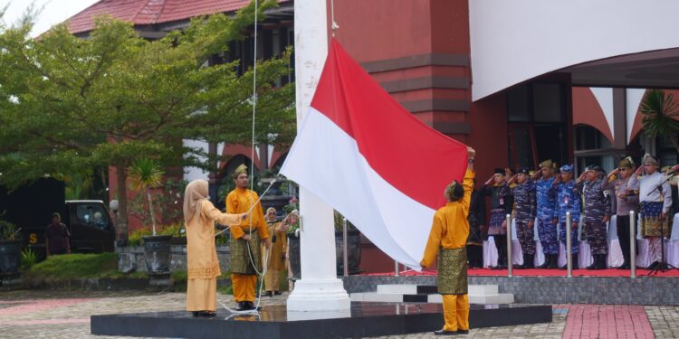 BINTAN – Mengenakan pakaian kebanggaan masyarakat Melayu (Kurung Melayu), Pemerintah Kabupaten Bintan melaksanakan Upacara Peringatan Hari Jadi Provinsi Kepulauan Riau ke 22 tahun 2024.