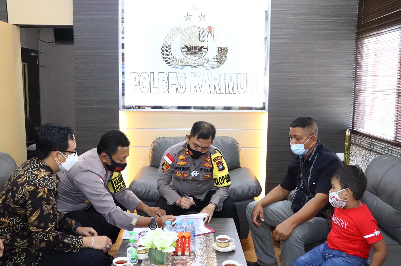 Kedatangan Bapak Razak bersama keluarga langsung disambut Kapolres Karimun AKBP MUHAMMAD ADENAN, SIK di ruang Lounge Sarja Arya Racana Polres Karimun dengan dihadiri oleh Wakapolres Karimun, Kabagren, Kabagsumda, Kapolsek Kuba, Camat Belat, Kades Penarah.