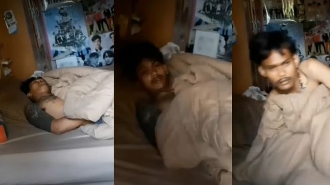 Sang pencuri tampak melihat kiri dan kanan, menarik selimut untuk menutupi dadanya yang telanjang. Meski berkali-kali dibentak, dia terus tampak kebingungan seperti belum sadar apa yang terjadi.