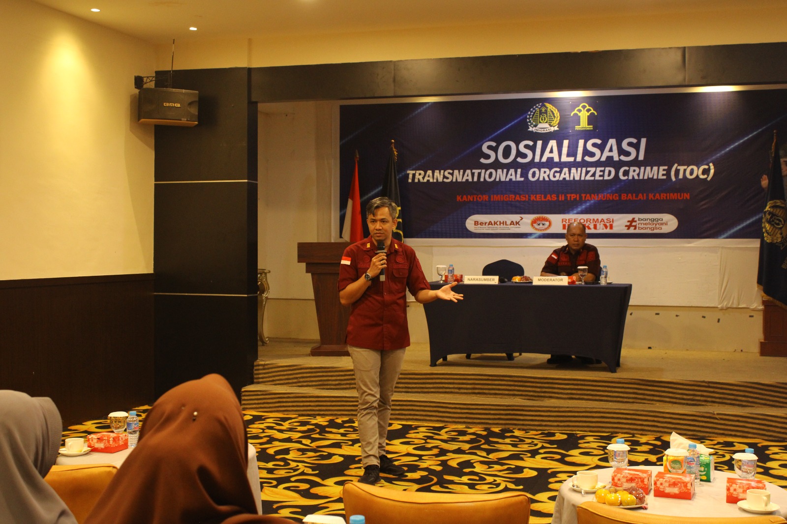 Keprionline.co.id, Karimun – Kepala Kantor Imigrasi Kelas II TPI Tanjung Balai Karimun Zulmanur Arif disela-sela sosialisasi Transnational Organized Crime (TOC) menyampaikan saat sudah kita harus pahami cara pencegahan terhadap ancaman kejahatan terorganisir transnasional yang saat ini sedang marak.