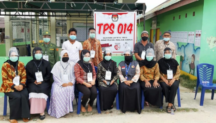 KEPRIONLINE CO.ID ,KARIMUN – Pemilihan Bupati dan Wakil Bupati pada Pilkada Tahun 2020 yang di selenggarakan di TPS 014 yang berlokasi di Jl.Kuda Laut Kelurahan Baran Timur Kecamatan Meral Kabupaten Karimun Provinsi Kepri, pada Rabu (9/12/2020) berlangsung aman dan kondusif.