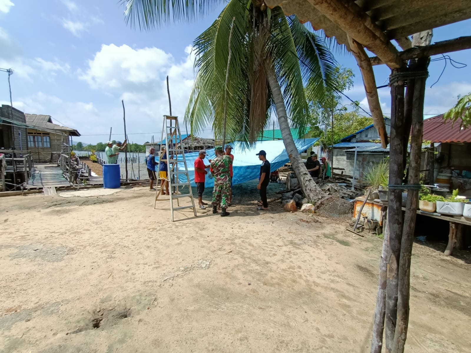 KEPRIONLINE CO.ID, KARIMUN – Tingkatkan kerja sama dan solidaritas yang tinggi, Babinsa Koramil 02/Moro jajaran Kodim 0317/TBK Koptu Benny Murdani, membantu pembangunan dapur untuk acara pernikahan salah satu warga binaannya, Minggu (17/10/2021).