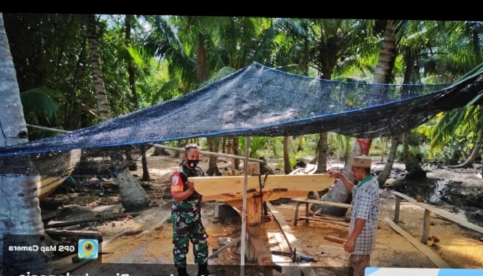 “Dalam pembuatan perahu harus memliki ketrampilan dan skill dan lebih penting jaga kesehatan dan semangat dalam melakukan apapun, semoga apa yang kita kerjakan menjadi berkah dan mendapatkan hasil yang memuaskan”, ucap Serka M. Amin memberikan semangat kepada Lahalimo.