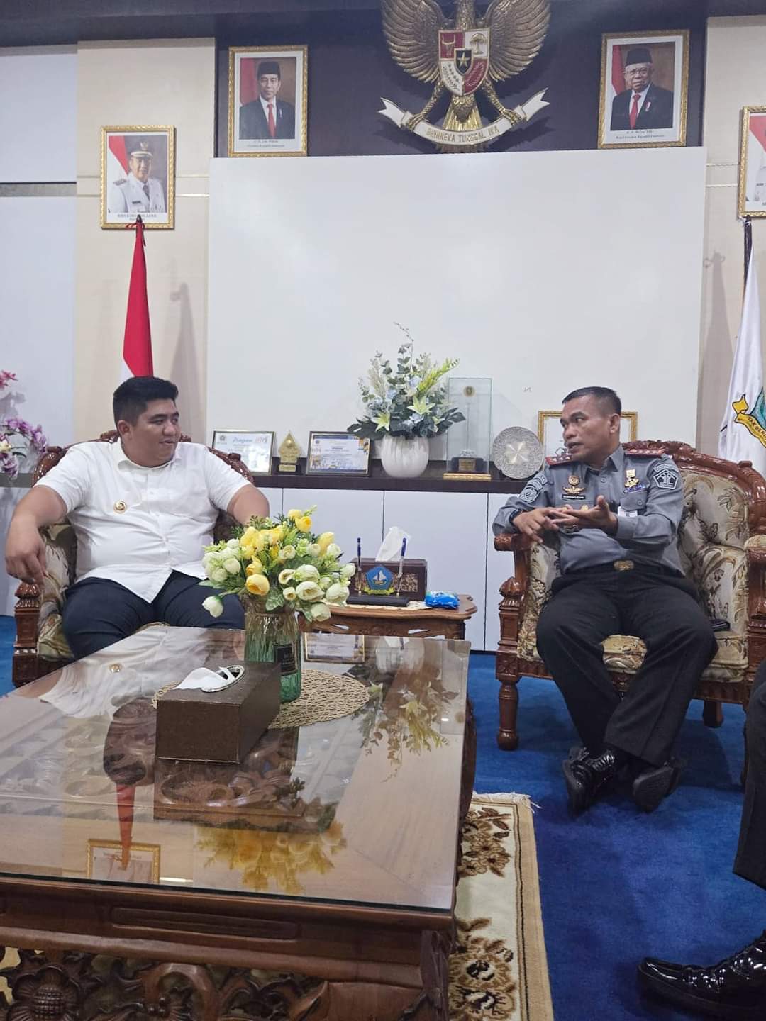 BINTAN – Kalapas Kelas IIA Tanjungpinang, Mishbahuddin melakukan kunjungan silaturahmi dengan Bupati Bintan, Roby Kurniawan.