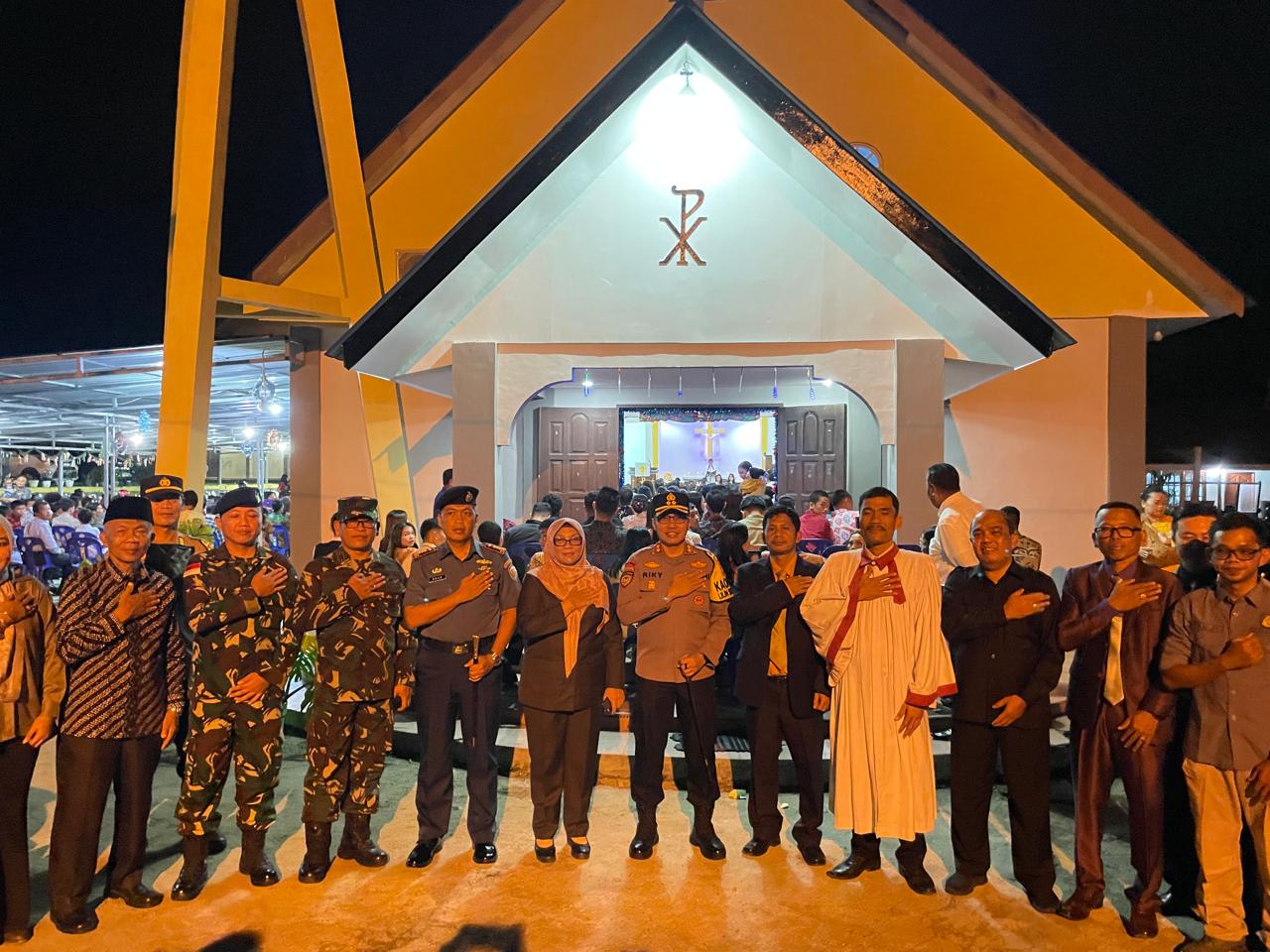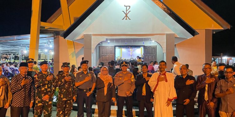 BINTAN – Kapolres Bintan bersama dengan FKPD Kabupaten Bintan meninjau pelaksanaan ibadah Natal umat nasrani di beberapa Gereja yang ada Kecamatan Bintan Utara pada Selasa, 24 Desember 2024, malam.