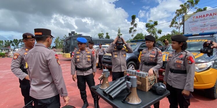 Juga dilakukan pemeriksaan terhadap peralatan dalmas yaitu Senjata Dalmas, Senjata Pelontar Panjang, Senjata Pelontar Pendek, serta perlengkapan dalmas seperti Tameng, Rompi, Pelindung Tangan dan Kaki, Tongkat Dalmas, Apar, Portable acoustic, Mega Phone, Long Range Acoustic Device dan lainnya.