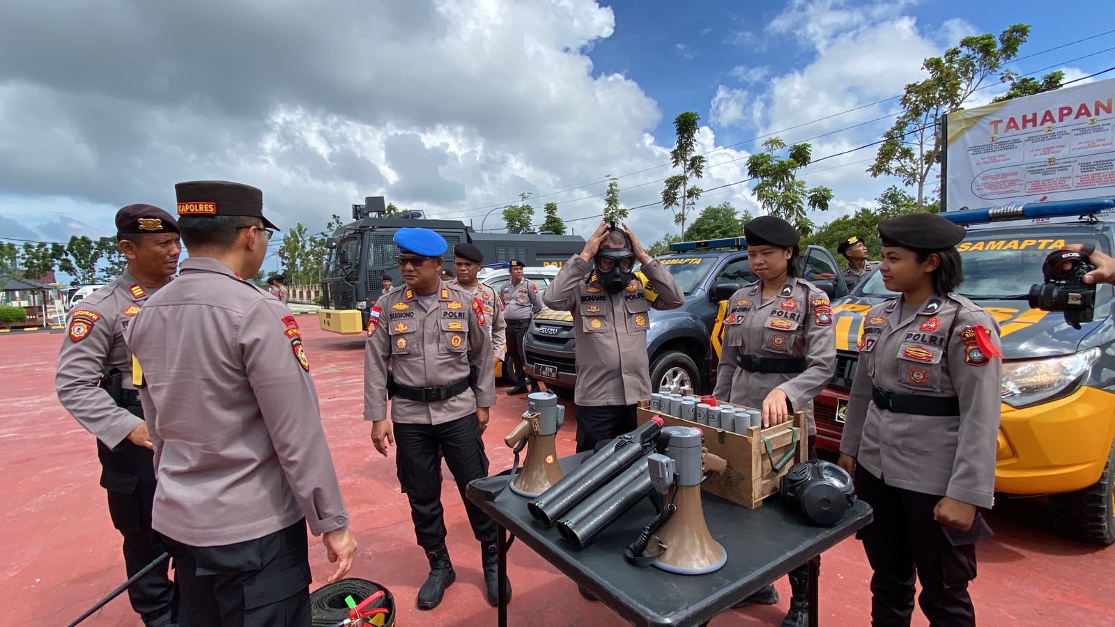Saat pemeriksaan peralatan Kapolres Bintan beserta Kabagops memeriksa langsung dan mencoba penggunaannya dengan maksud apakah peralatan dalmas tersebut dalam keadaan baik atau dalam keadaan rusak.