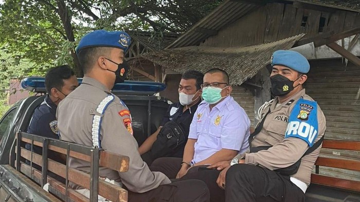 Dari foto yang diperoleh detikcom, Kepas Panagean Pangaribuan tampak memakai kemeja warna putih. Dia dikawal 5 polisi di mobil tersebut.