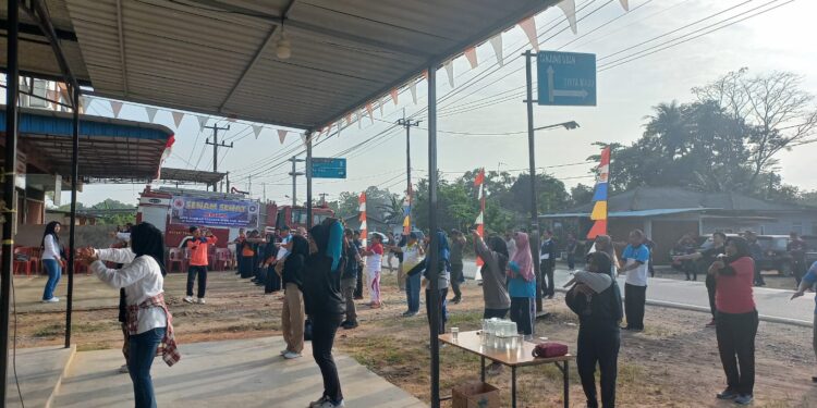 BINTAN – Badan Penanggulangan Bencana Daerah (BPBD) Bintan menggelar senam sehat bersama masyarakat di UPTD Damkar Toapaya, Kecamatan Gunung Kijang, Kabupaten Bintan.