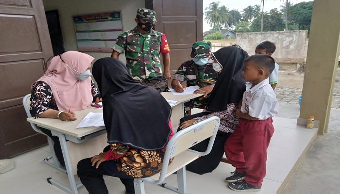Pelaksanaan vaksinasi didampingi oleh, anggota Koramil 02 Moro Kodim 0317 TBK, serta Nakes dari Niur permai.