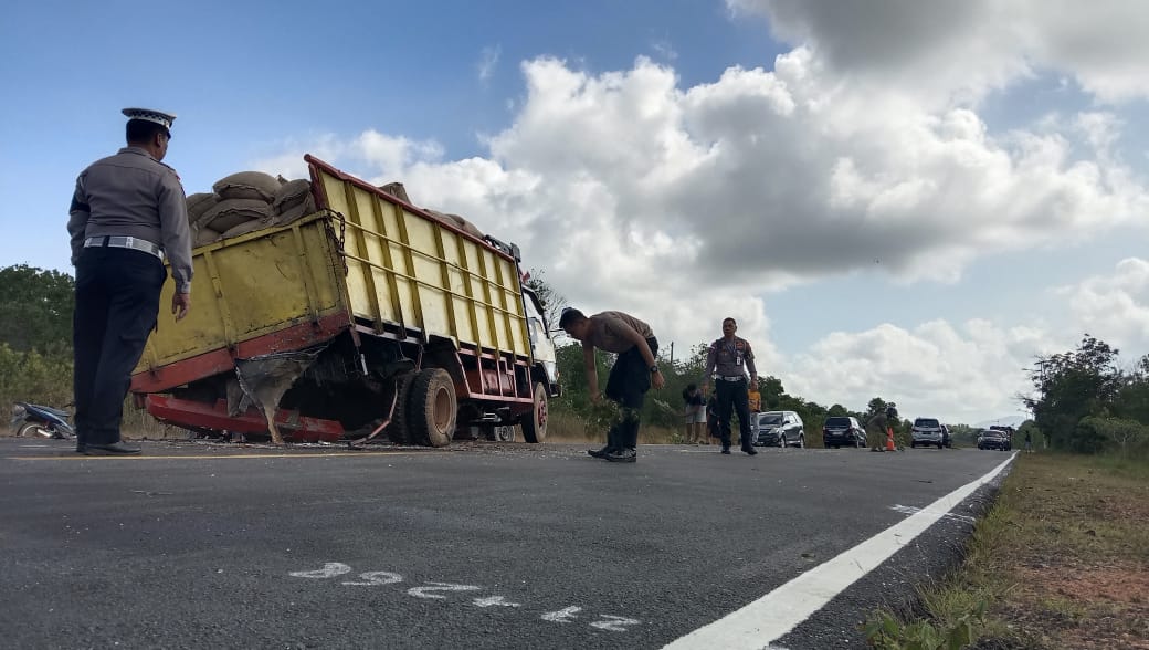 Kejadian tersebut dibenarkan Kasat Lantas Polres Bintan AKP Khapandi melalui Kanit Laka Lantas Polres Bintan Ipda Djuang menyampaikan, pada saat kejadian truk warna kuning BP 8442 BY tengah mengalami kerusakan akibat pecah ban.