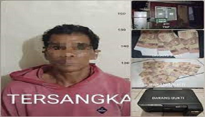 “Dari penggeledahan kediamannya, kami menyita sejumlah barang bukti seperti printer, kertas yang digunakan untuk mencetak uang palsu, lem, gergaji, amplas, pisau cater, gunting, sepeda motor, dan 41 lembar uang palsu pecahan Rp 5.000 yang sudah dicetak dan siap untuk diedarkan,” beber Rizky.