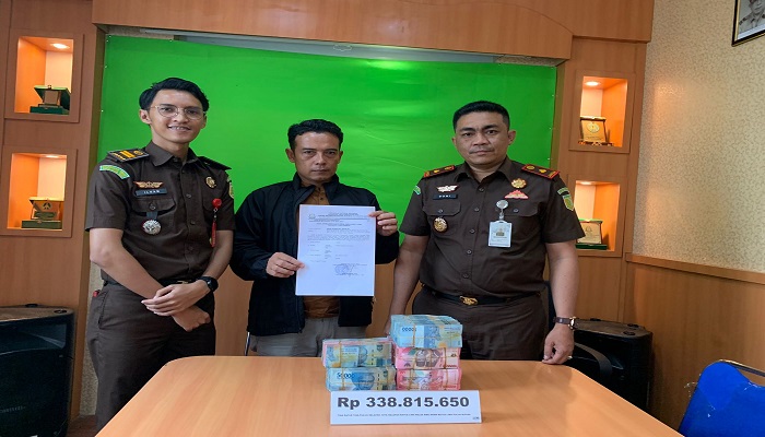 Keprionline.co.id, Karimun – Uang pengganti sebesar Tiga Ratus Tiga Puluh Delapan Juta Delapan Ratus Lima Belas Ribu Enam Ratus Lima Puluh Rupiah telah diterima Kantor Cabang Kejaksaan Negeri (Kacabjari) Karimun di Tanjung Batu atas kasus korupsi, Selasa (2/5/2023).