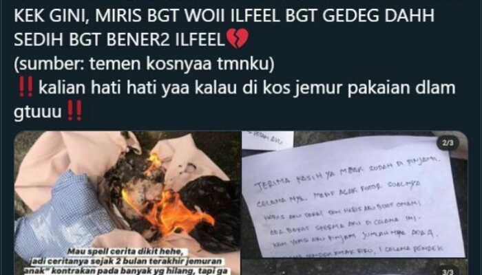 “Aku dua kali kehilangan daleman di kosan, sekali hilang satu gantungan gitu isinya ada 8 biji:(bayangkeun sampe stok aku tipis yang pertama ngak balik, yang kedua balik 2 minggu kemudian ada di jemuran, ” timpal warganet lainnya @yoon*** . ( Sumber suara.com) .