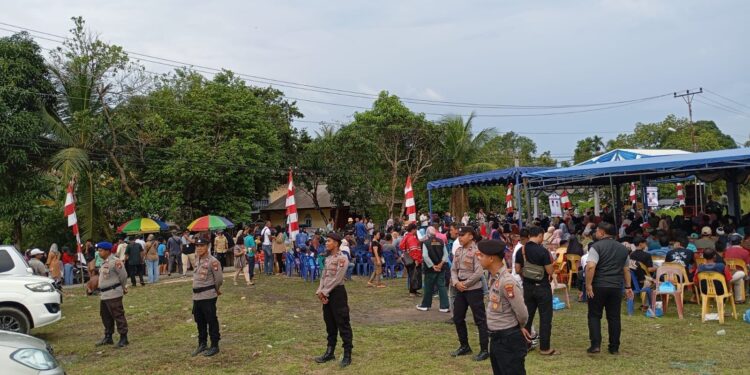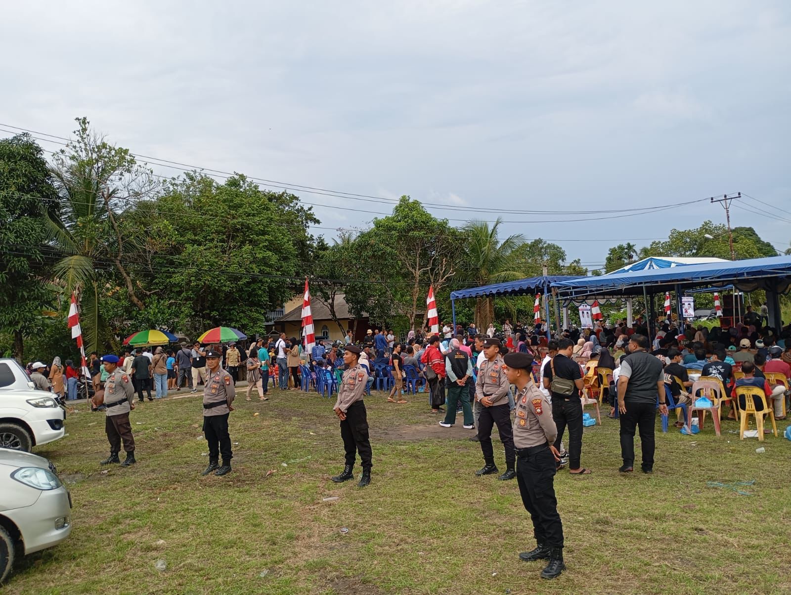 Pengamanan area sekitar lokasi kampanye dilakukan di kediaman Bapak Muhammad Hanafi jalan Kampung Baru Desa Sebong Pereh Kecamatan Teluk Sebong, Selasa (8/101/2024).