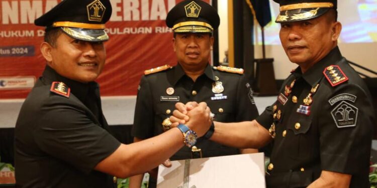 Usai dilantik, Maman Herwaman menyerahkan jabatannya kepada Mishbahuddin dalam Sertijab di Gedung Trans Convention Centre Tanjungpinang.