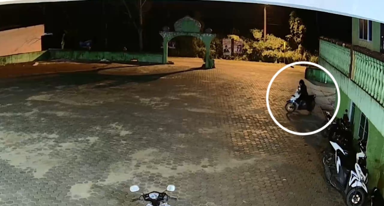 Pelaku Curanmor Beraksi di Masjid Nurul Huda Km 20 Kijang Terekam CCTV.