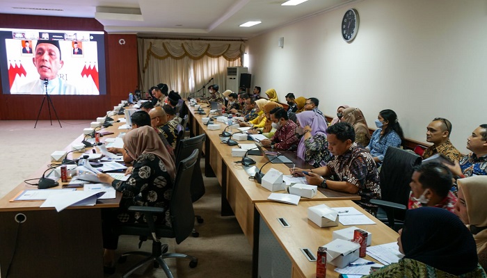 Hal itu disampaikan Gubernur Ansar saat hadir secara virtual dalam kegiatan Evaluasi Sistem Akuntabilitas Kinerja Instansi Pemerintahan (SAKIP) dan Reformasi Birokrasi (RB) Pemprov Kepri oleh Kementerian Pemberdayaan Aparatur Negara dan Reformasi Birokrasi/Kemenpan-RB dari Pekanbaru, Kamis, (25/08). Sementara Sekdaprov Adi Prihantara bersama Kepala OPD Pemprov Kepri mengikut dari Ruang Rapat Utama Kantor Gubernur Kepri.