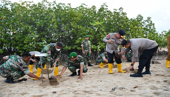 Danrem menyampaikan penanaman mangrove bertujuan untuk menjaga ekosistem sehingga melindungi dari abrasi dan untuk kandungan oksigen ini juga merupakan wilayah untuk kehidupan dari beberapa biotalaut antara lain kepiting, udang dan biotalaut lainnya.