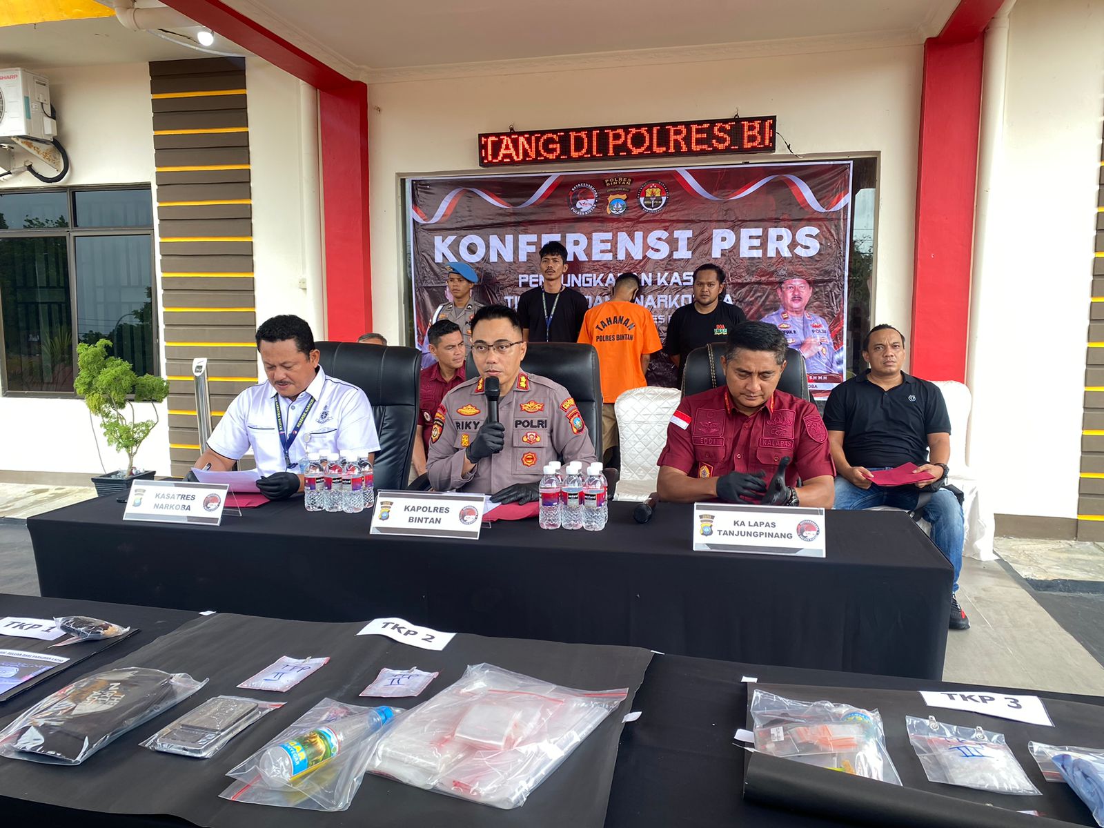 Kapolres Bintan AKBP Riky Iswoyo dalam konpresi persnya .