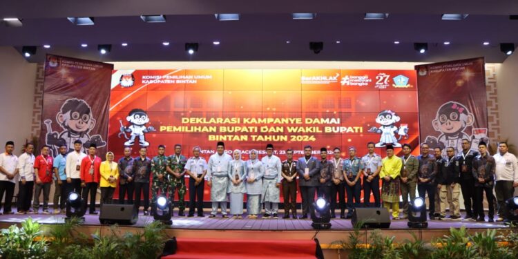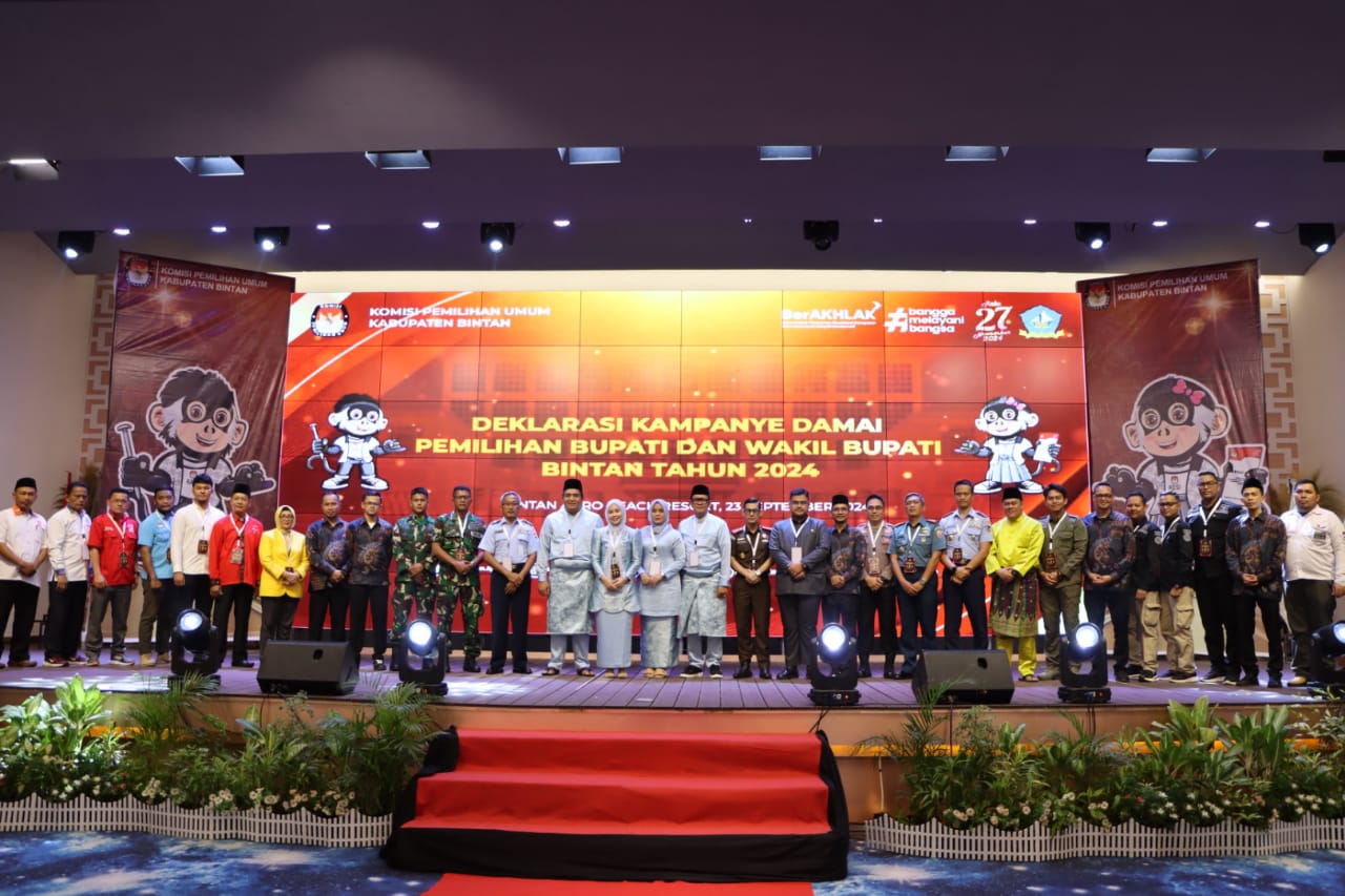 BINTAN – Kapolres Bintan AKBP Riky Iswoyo menghadiri deklarasi kampanye damai pemilihan bupati dan wakil bupati tahun 2024 yang dilaksanakan di Ballroom Bintan Agro Beach resort Kecamatan Gunung Kijang, Senin (23/9/24).