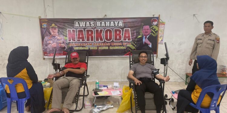 Polres Bintan dan Warga Ikuti Donor Darah di Kampung Bebas Narkoba