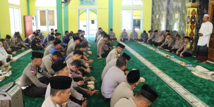 BINTAN – Memperingati 1 Muharram 1446 H Tahun 2024 Polres Bintan menggelar doa bersama sekaligus mendengarkan ceramah Agama yang disampaikan oleh Ustadz Ahmad Fauzi Armandaris yang dilaksanakan di Masjid Darul Muttaqien Polres Bintan, Kamis (18/7/2024).