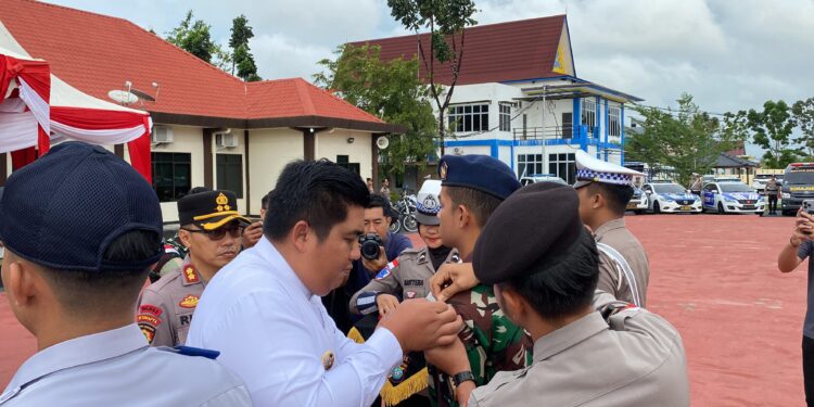 Bupati Bintan Roby Kurniawan, S.Pw.K menyampaikan hari ini kita laksanakan apel gelar pasukan sebagai bentuk komitmen tugas untuk mengecek kesiapan personil maupun sarpras dalam rangka pengamanan perayaan Natal 2024 dan Tahun Baru 2025 sehingga dapt berjalan aman, tertib dan lancar, Ujar Bupati membacakan amanat Kapolri.