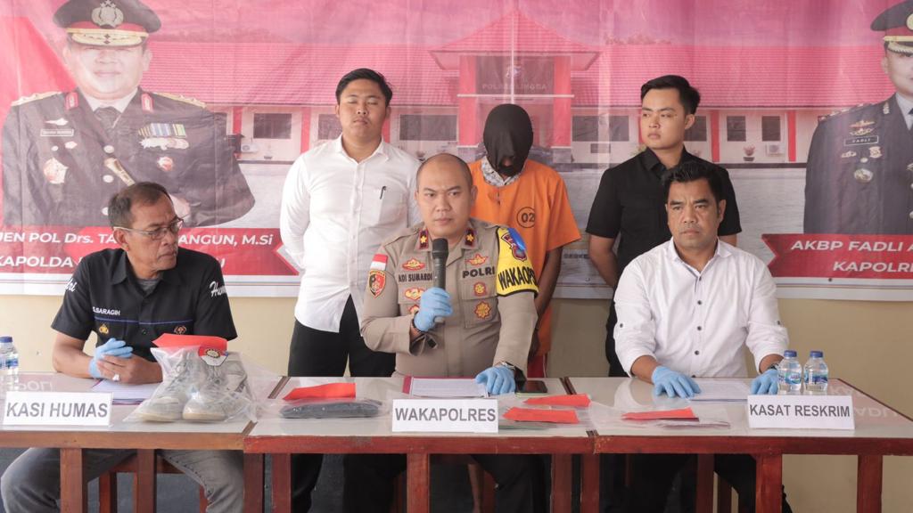 Dengan menghadirkan terduga pelaku dan barang bukti, Konferensi Pers di awali dengan Kasus tindak Pidana melarikan dan melakukan perbuatan cabul terhadap anak di bawah umur.