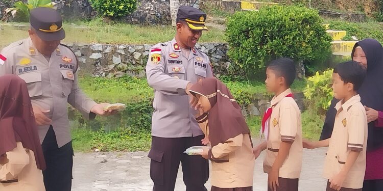 BINTAN – Polsek Bintan Utara (Binut) bagikan sarapan kepada pelajar Sekolah Dasar. Kali ini, sarapan merah putih diberikan kepada murid SDN 001 Kampung Senggiling Desa Sri Bintan Kecamatan Teluk Sebong, Jumat (4/8/2023)