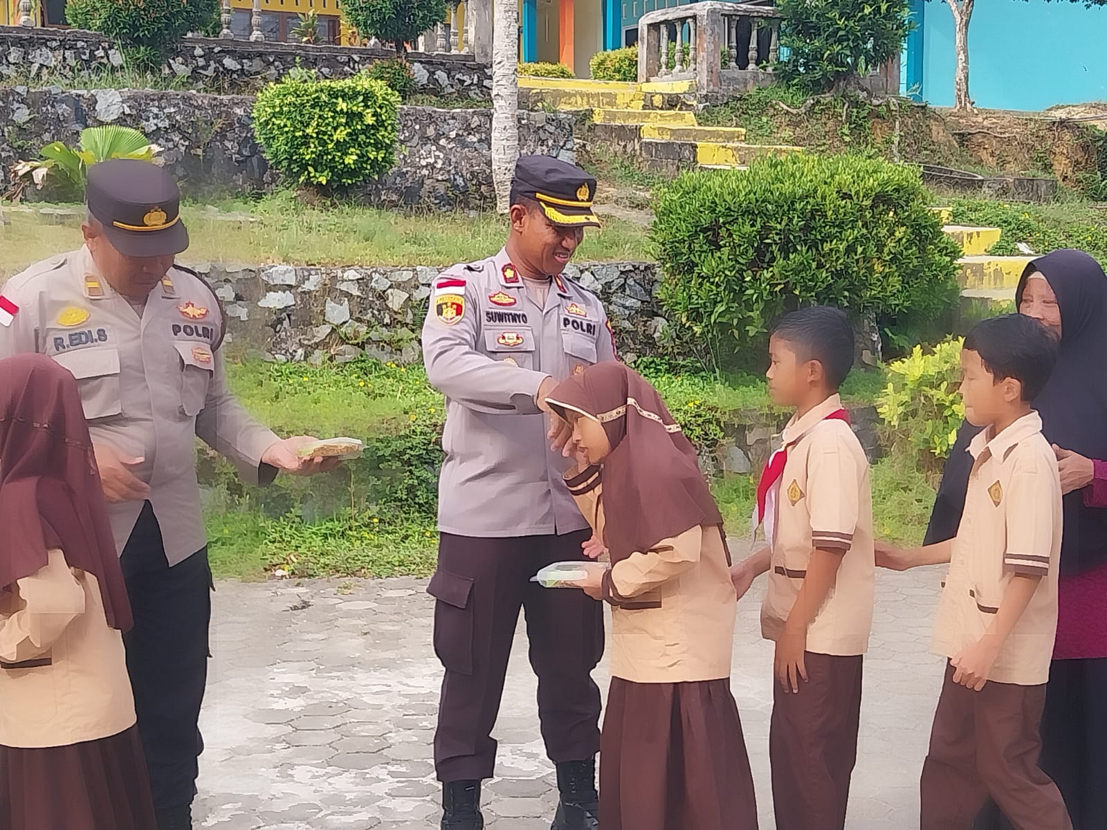 Kompol Suwitnyo juga menyampaikan, “Sebanyak 100 bungkus nasi lemak dengan lauk mie hun, Telur, dan Ikan Teri dalam satu bungkus sarapan merah putih tersebut setiap harinya kita berikan kepada pelajar Sekolah Dasar”.