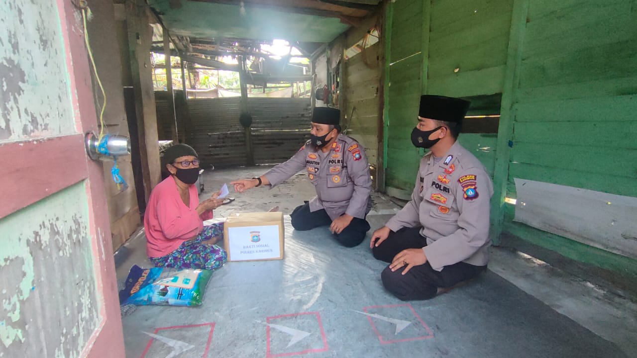 KEPRIONLINE.CO.ID,KARIMUN-Kegiatan rutin bakti sosial Kapolres Karimun AKBP Muhammad Adenan Sik, yang di wakili oleh Kasat Binmas Polres Karimun AKP BT. Nasution dalam rangka membantu warga yang sedang mengalami kesulitan yang patut mendapat bantuan di masa pendemi covid-19, Jumat (22/01/2020)