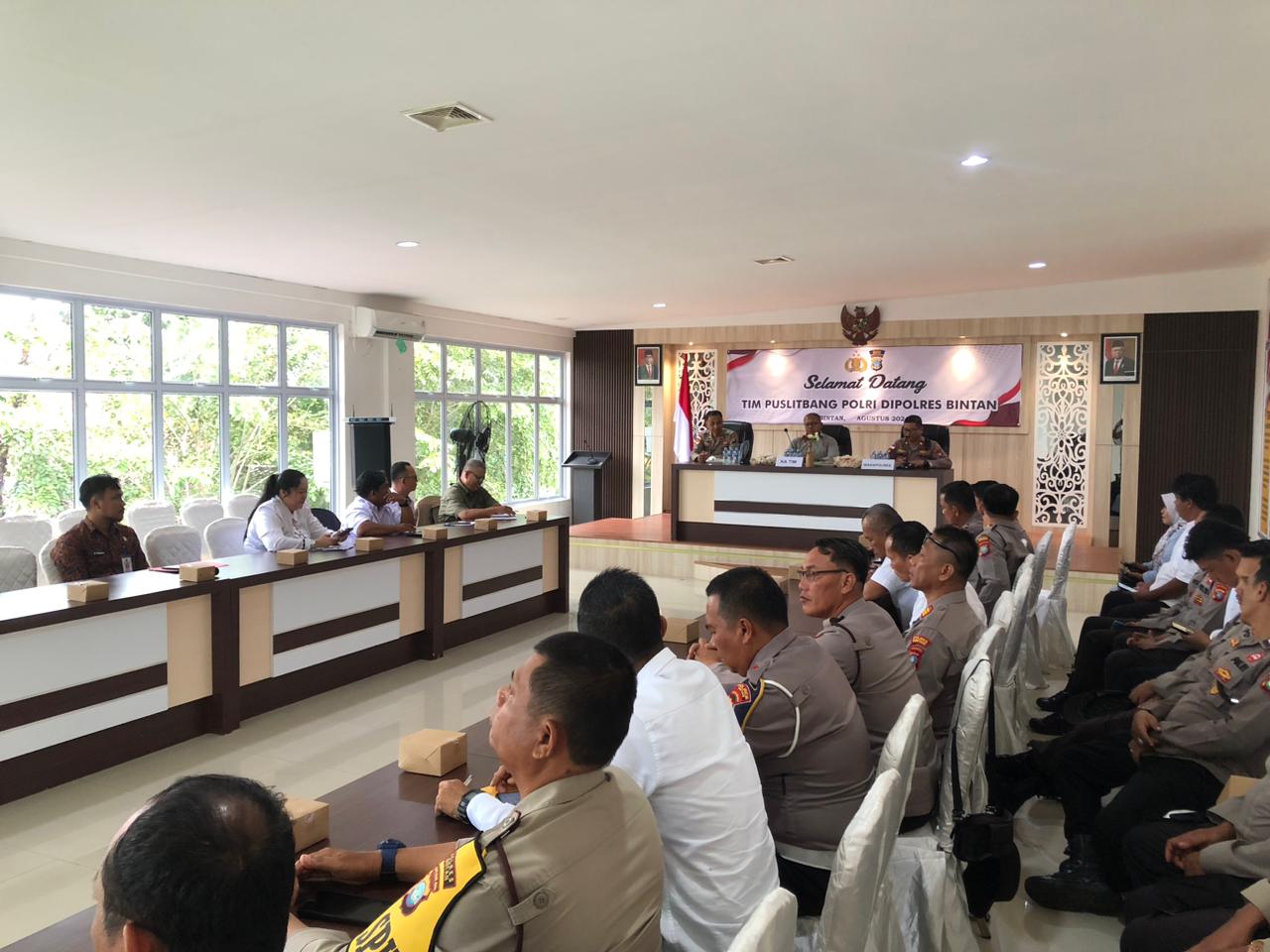 Bintan – Puslitbang Polri Lakukan Penelitian tentang Penanganan Kekerasan terhadap Perempuan dan Anak bertempat di Aula Sarja Arya Racana (SAR) Polres Bintan pada Rabu (07/08/2024).