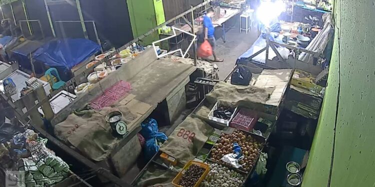 BINTAN – Ratusan Kilogram (Kg) ayam potong di Pasar Barek Motor Kijang ludes digondol maling yang terekam CCTV pribadi milik pedagang.