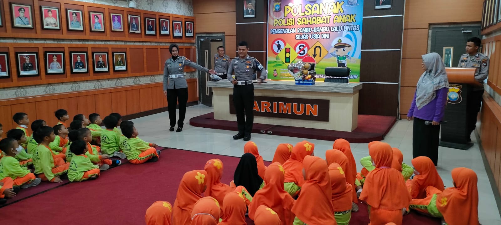 Kegiatan edukasi dan pengenalan tugas Polri khususnya Sat Lantas, memberikan sosialisasi tentang tata cara berlalu lintas dan pengenalan rambu-rambu lalulintas kepada murid taman kanak-kanak. Kegiatan ini merupakan salah satu program Sat Lantas Polres Karimun untuk mengenalkan sosok Polri kepada kalangan pelajar mulai usia sejak dini yaitu Program Polisi Sahabat Anak (Polsanak).